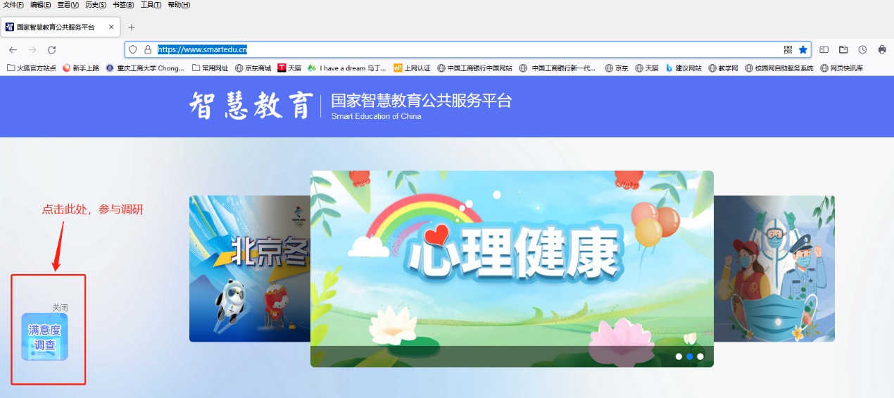 调研方式:访问国家智慧教育公共服务平台(https://www.smartedu.cn/),点击宝威在线登录_宝威(中国)的悬挂窗口参与调查。