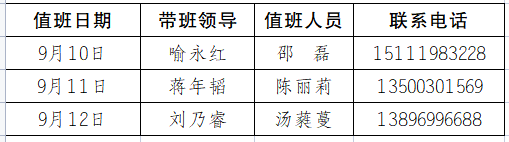 为更好地服务全校师生,保障中秋节期间学校相关工作顺利开展,党政办公室每天均安排值班人员,负责学校校章、党委印章、法人印章、学校合同章、党政办公室印章等用印,学校介绍信开具,公文签发审核,会议室申请及使用等工作,请需求单位或师生按规定流程履行签批手续,其他未尽事宜,请与值班老师联系。