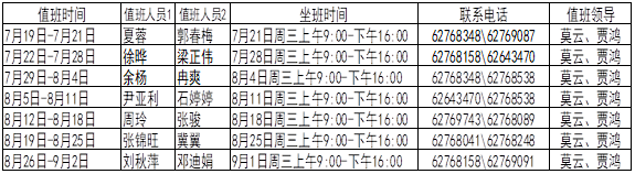 2.值班人员安排如下:坐班时间每周三9:00-16:00