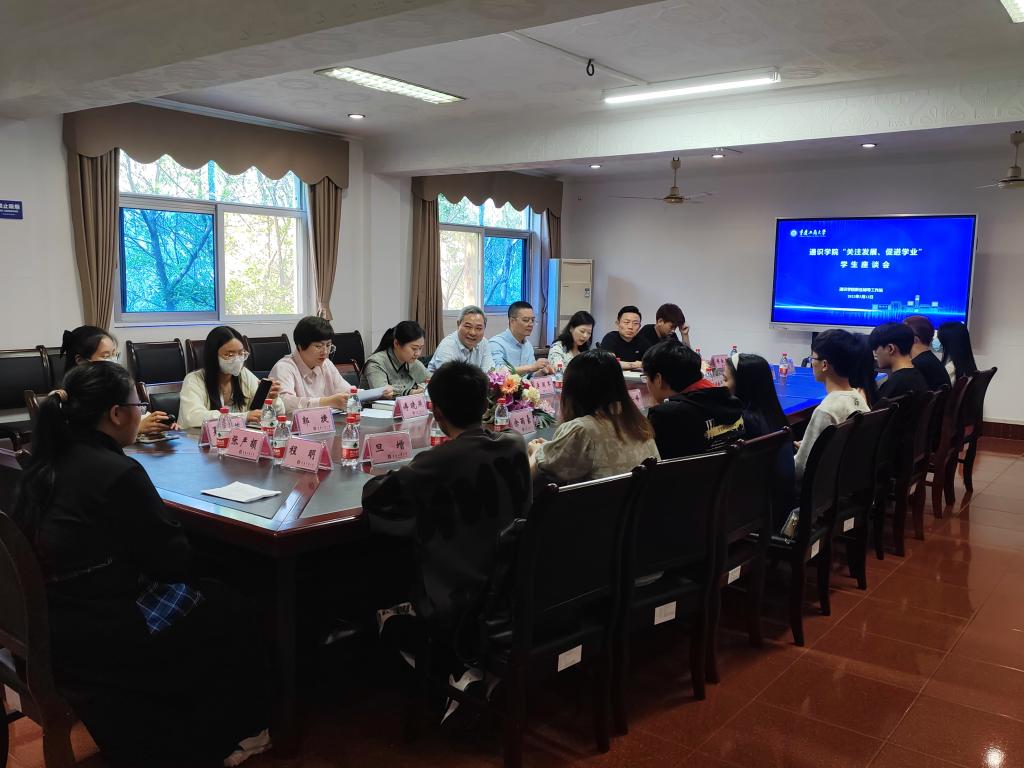 5月12日下午,党委常委、副校长李国军,学生处副处长谭彩荷一行到通识学院调研指导学生学业促进工作,并参加“关注发展、促进学业”学生座谈会。通识学院领导班子,综合办、学工办负责人,全体辅导员和学生代表参加了座谈会。会议由通识学院副书记、副院长况源主持。
