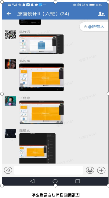 陆冀宁老师:今天主讲《产品设计分析》课程,提前将课件发给学生进行了预习,采用企业微信直播与QQ线下沟通、学校在线网络教学平台等方式进行教学,我总结了几点:线上教学学生更活跃、发言更大胆,交流反馈更及时;在线教学形式丰富,直播适合用于理论讲授,会议适合用于单独或小组辅导;在线网络平台更适合教学资料观看,作业收发等,希望借助这次机会,掌握更多更新的教学手段。