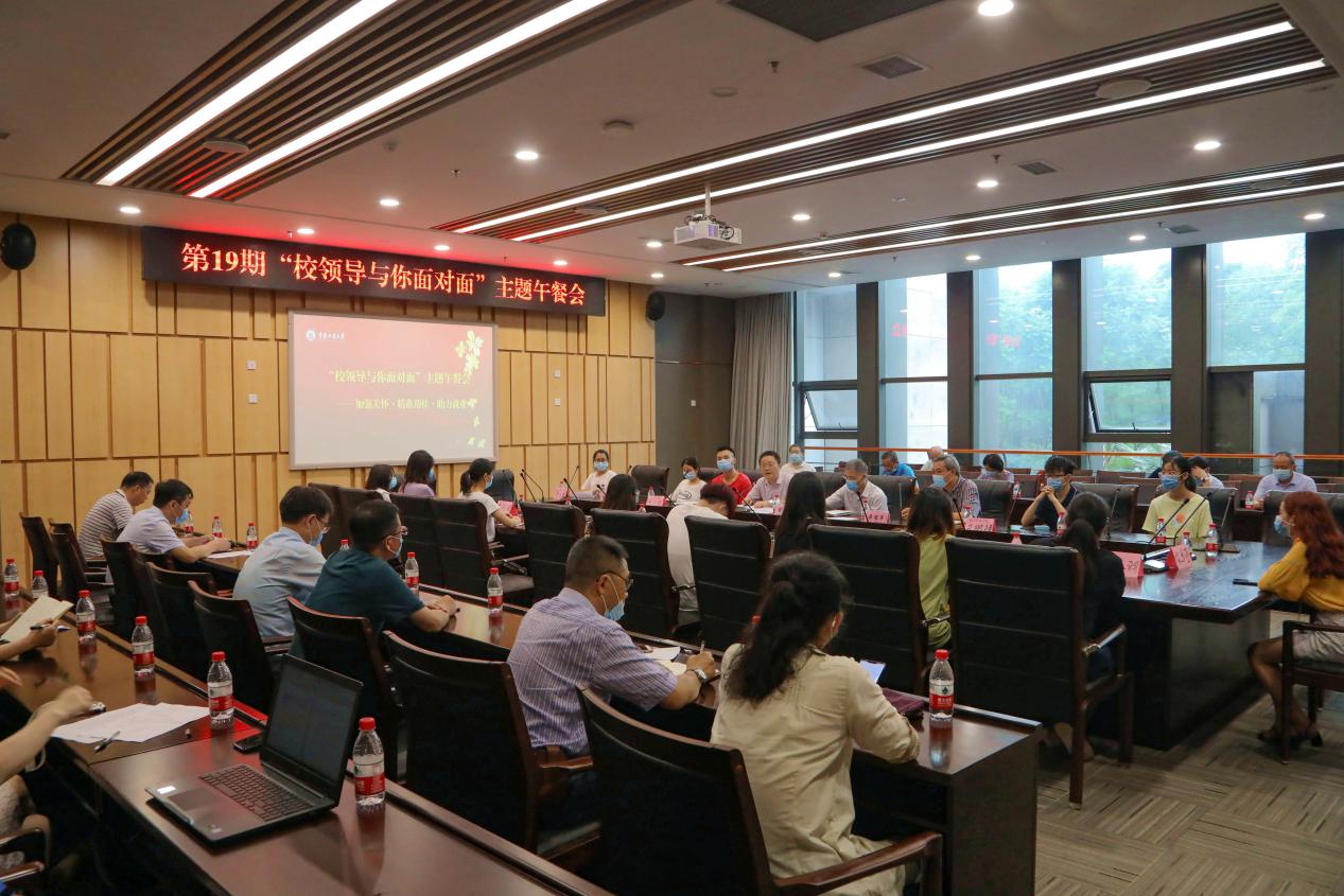 为进一步摸清特殊群体未就业毕业生的就业意向和需求,更有针对性地为毕业生提供精准指导和服务,6月22日上午,我校在图书馆五会议室召开了主题为“加强关怀、精准帮扶、助力就业”的第19期“校领导与你面对面”主题午餐会。副校长陈运超、李国军和相关部门、学院负责人,以及部分毕业生代表参会。会议由招生就业处处长申卫东主持。