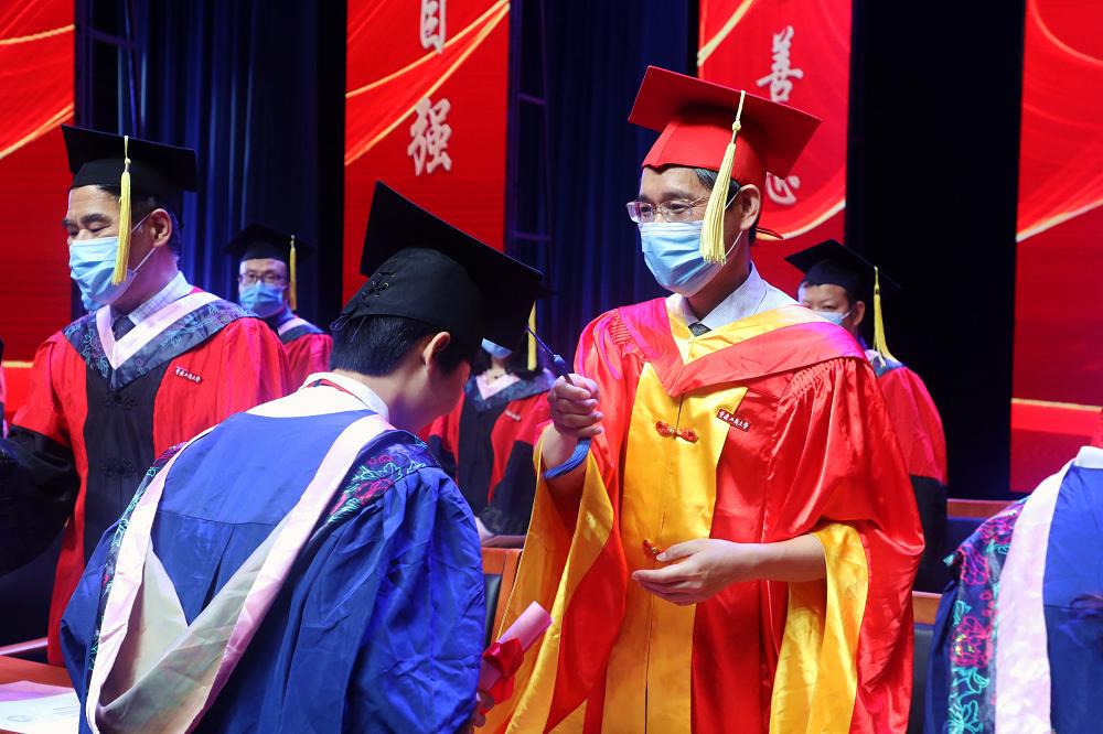 在雄壮的国歌声中,毕业典礼正式开始。首先,何勇平副校长宣读了《关于授予蒙兰佳等6268名普通全日制本科学生学士学位的决定》,校领导为2020届本科毕业生代表颁发毕业证书并授予学士学位。柏群副校长宣读了《宝威在线登录_宝威(中国)关于授予周超等606名同学博士、硕士学位的决定》,校领导为毕业硕士研究生代表颁发毕业证书并授予硕士学位。陈运超副校长宣读了《关于表彰2020届优秀大学毕业生的决定》和《关于表彰2020届优秀毕业研究生、优良毕业研究生的决定》,校领导分别为优秀本科毕业生、优秀毕业研究生代表颁发了荣誉证书,勉励他们今后在各自的岗位上奉献社会,建设国家。