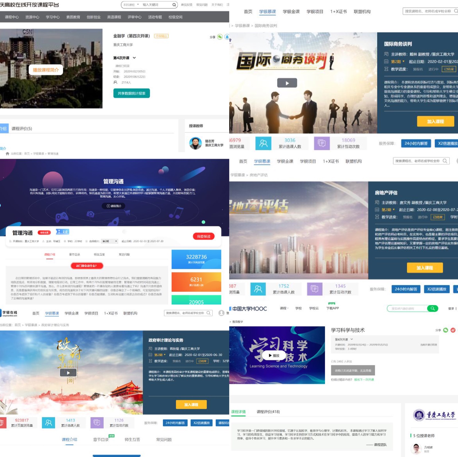 我校从2017年开始全面启动课程改革与教学资源建设专项工作。目前共启动146项校级课程改革建设项目、91项在线学习平台教学资源建设项目和26项校级在线开放课程建设项目。我校已经有近11门在线课程分别进入中国大学慕课、学银在线、学堂在线、智慧树在线教育平台、重庆高校在线开放课程平台等,学生选课数量高达70000余人次。
