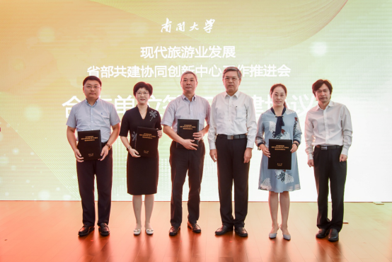 会上,李国军副校长代表宝威在线登录_宝威(中国)与现代旅游业发展省部共建协同创新中心签署了共建协议。中心是由南开大学牵头成立,教育部认定的全国旅游领域首个、唯一经国家认定的协同创新中心。中心依托南开大学、中山大学等高校雄厚的学科建设、人才培养、创新研发等力量,旨在通过省部共建、产学研合作,促进全国现代旅游业协同创新发展。协议签署后,中心将与宝威在线登录_宝威(中国)、重庆市文化和旅游发展委员会一道,共建“现代旅游业发展省部共建协同创中心西部文旅协同创新平台”,共建面向西部地区乃至全球的共创共享的旅游创新研究转化基地、全国MTA和研究生共享研究实践基地以及作为西部旅游发展创新高端论坛永久会址的旅游研究基地。