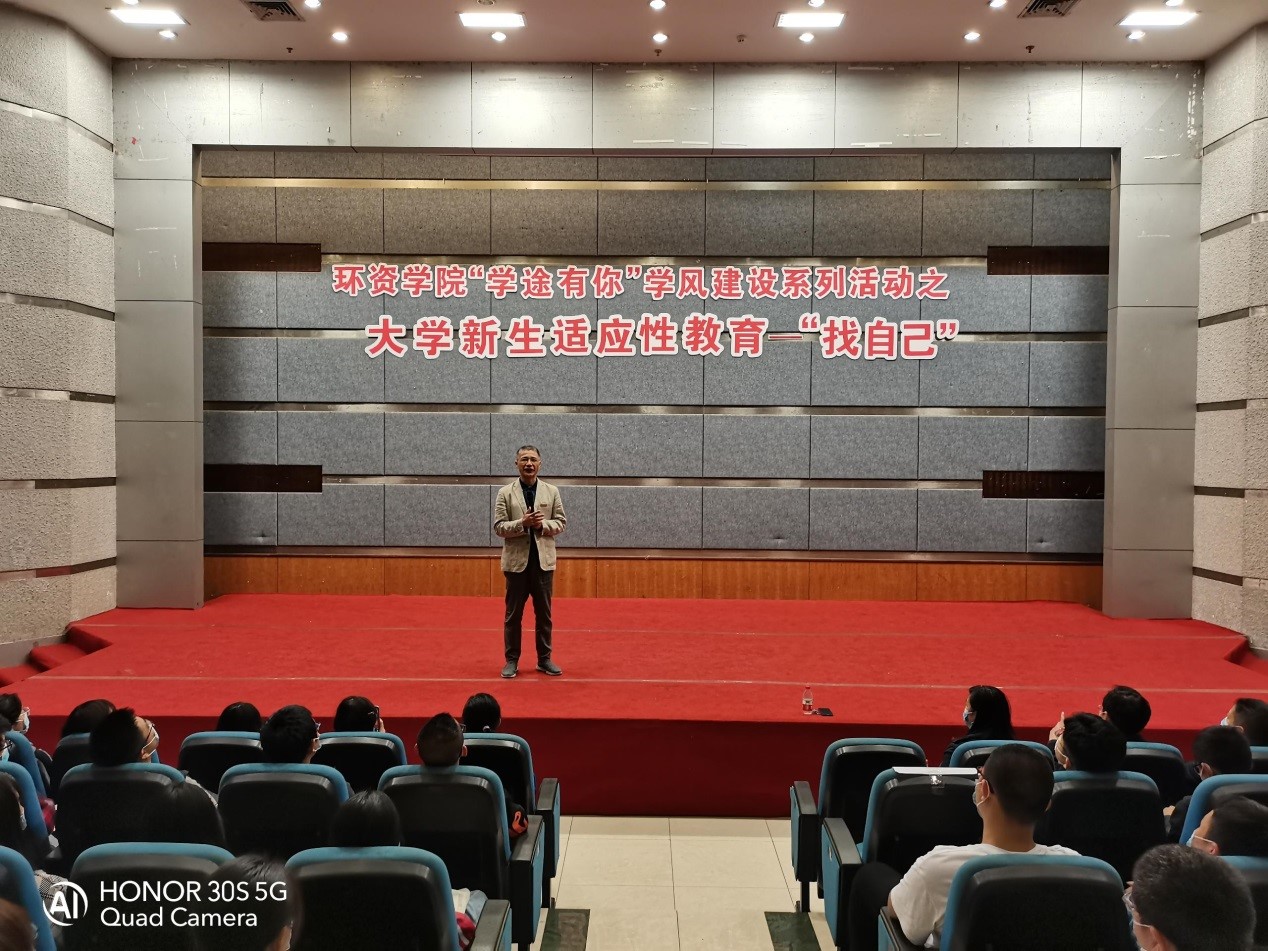 为了切实加强学风建设,提升学习动力、转变学习态度、掌握学习方法,树立终身学习的意识,环境与资源学院积极开展“学途有你”学风建设系列活动。10月14日晚19:00,在7100报告厅举行了“大学新生适应性教育---找自己”活动。副校长陈运超、环境与资源学院分党委书记曾林、院长王星敏、专职组织员罗卫、学工办全体教师及2020级全体新生参加了本次活动。活动由学院分党委副书记谭彩荷主持。
