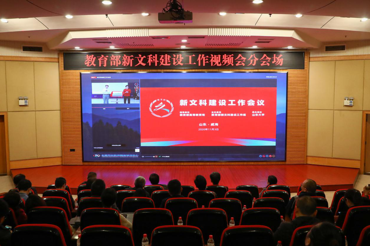 11月3日,由教育部新文科建设工作组主办的新文科建设工作会议在山东大学(威海)召开,发布《新文科建设宣言》,对新文科建设作出全面部署。会上,教育部高教司司长吴岩作题为《积势蓄势谋势识变应变求变全面推进新文科建设》主题报告。我校在博智楼7200报告厅设立视频会分会场。校长孙芳城,副校长何勇平、柏群、李敬,国家教学指导委员会委员、各学院院长、教学副院长、系主任及骨干教师,教务处(创新创业学院)、国际合作与交流处等部门中干和相关科室负责人参加了视频会议。