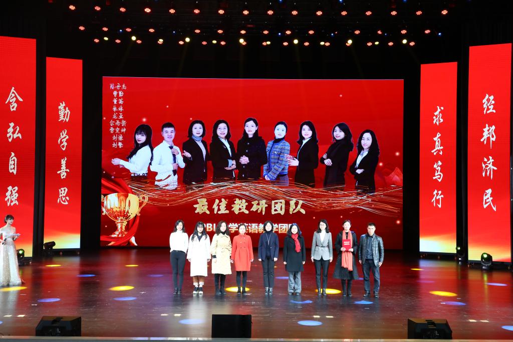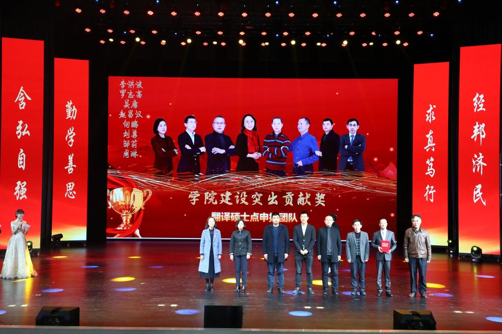 在教师颁奖环节中,李志雄为外国语学院建设突出贡献奖“翻译硕士点申报团队”颁奖,李国军为最佳教研团队“综合商务英语教学团队”颁奖,李敬为最佳教研团队“PBL大学英语教学团队”颁奖,其他与会领导分别为“最美辅导员”“教学之星”“实践教学之星”“科研之星”“综合管理之星”“啦啦操团队”以及省部级获奖学生代表、“外语文化月”系列赛事获奖学生代表、2020年度学生标兵逐一颁奖。