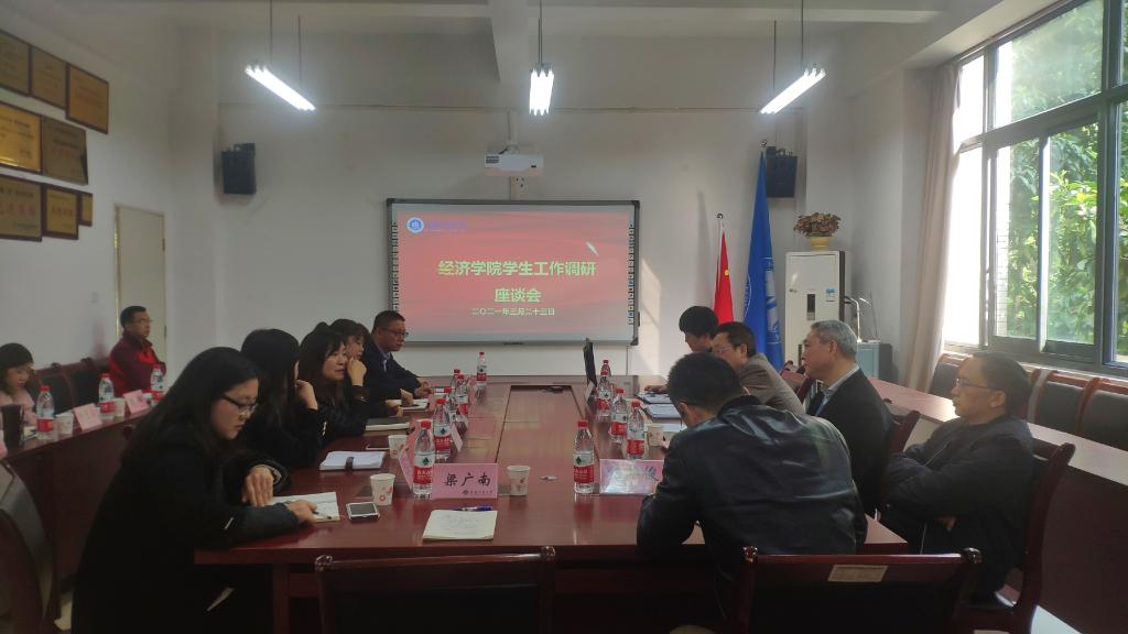 近日,副校长李国军到工商管理学院调研学生工作,党委学生工作部负责人陪同参加调研。工商管理学院党政班子成员、专职组织员和全体辅导员参会。会议由工商管理学院党委书记彭勇主持。