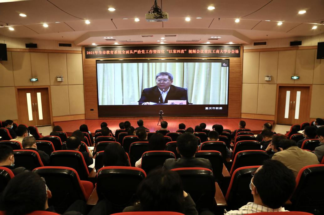 为深入贯彻习近平总书记关于全面从严治党的重要论述,全面落实十九届中央纪委五次全会精神和市纪委五届五次全会精神,进一步推进教育系统“以案四改”,4月2日上午,我校组织参加2021年全市教育系统全面从严治党工作暨深化“以案四改”视频会。全体在家校领导,中层干部以及有关职能部门科级干部参加了会议。会议由重庆市委教育工委专职副书记覃正杰主持。