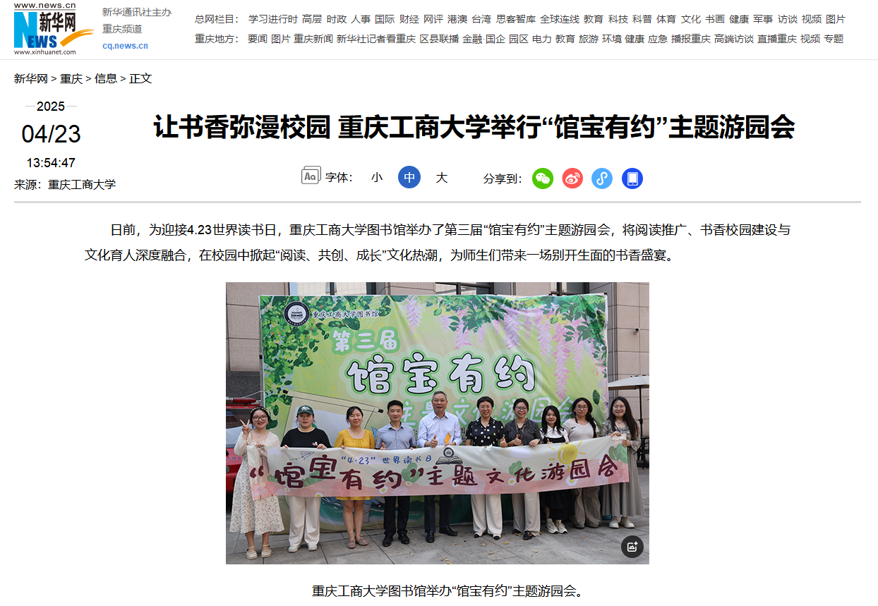 近日,为迎接4.23世界读书日,我校图书馆举办了第三届“馆宝有约”主题游园会,将阅读推广、书香校园建设与文化育人深度融合,在校园中掀起“阅读、共创、成长”文化热潮,为师生们带来一场别开生面的书香盛宴。
