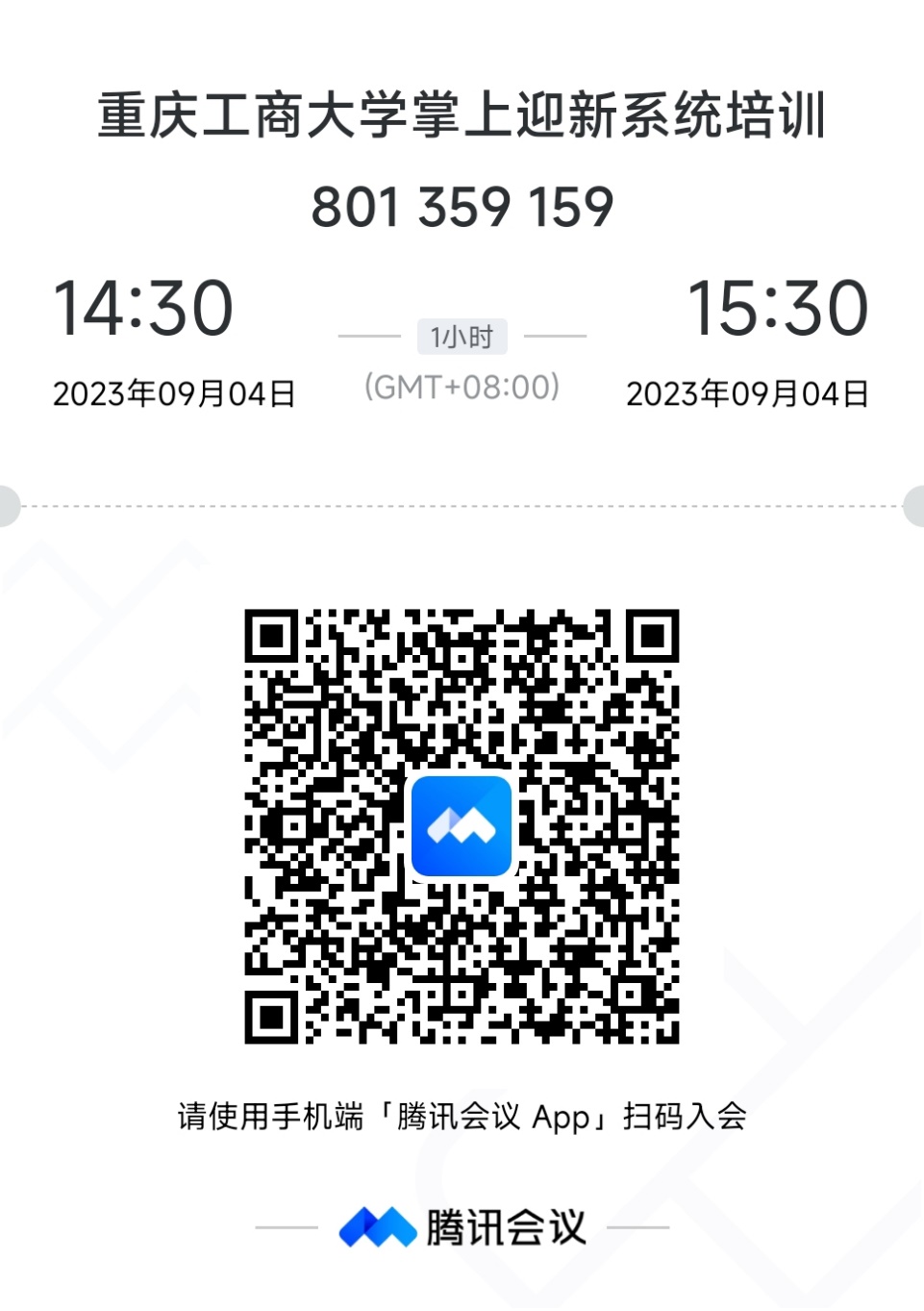 根据学校迎新工作安排,兹定于2023年9月4日14:30召开掌上迎新系统教师端培训会,请各学院负责迎新的辅导员及工作人员参加,会议采取线上方式,参会信息如下: