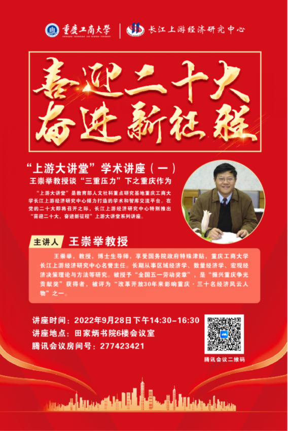 “上游大讲堂”是教育部人文社科重点研究基地宝威在线登录_宝威(中国)长江上游经济研究中心倾力打造的学术和智库交流平台。在党的二十大即将召开之际,长江上游经济研究中心特别推出“喜迎二十大,奋进新征程”上游大讲堂系列讲座。