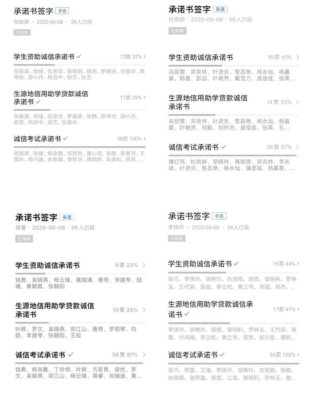 6月1日上午,2018级法学二班通过企业微信开展了以学生资助诚信教育为主题的线上活动。同学们纷纷表示此次活动向大家普及了金融知识,引导大家珍爱信用,理性借贷,不负信任,提高了大家的征信意识、金融知识、风险意识和法律意识。