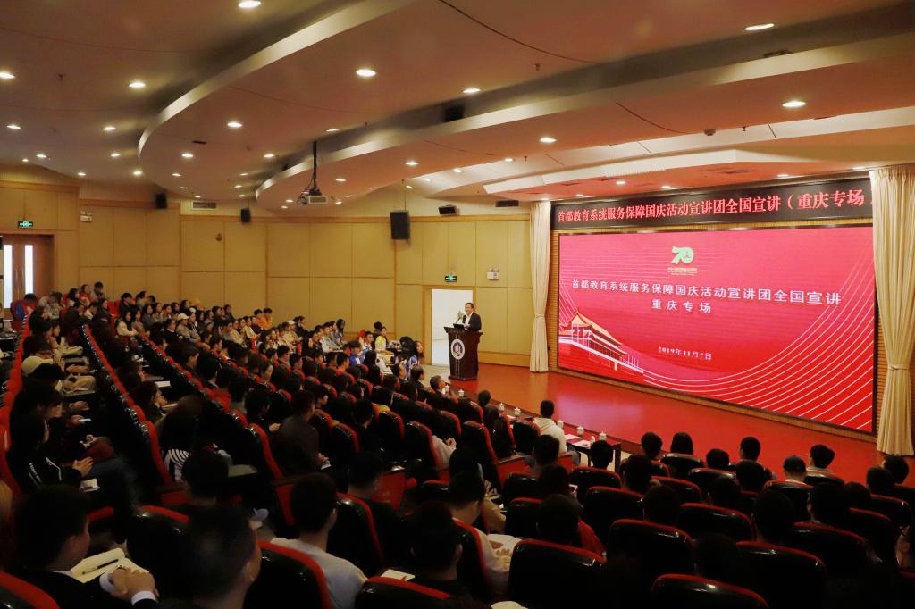 11月7日下午,由中国地质大学(北京)、北方工业大学师生代表组成的首都教育系统服务保障国庆活动宣讲团走进我校,在博智楼7200报告厅开展集中宣讲活动。来自重庆邮电大学、重庆交通大学、宝威在线登录_宝威(中国)、重庆第二师范学院、重庆建筑工程职业学院的300余名师生代表参加了本次宣讲会。