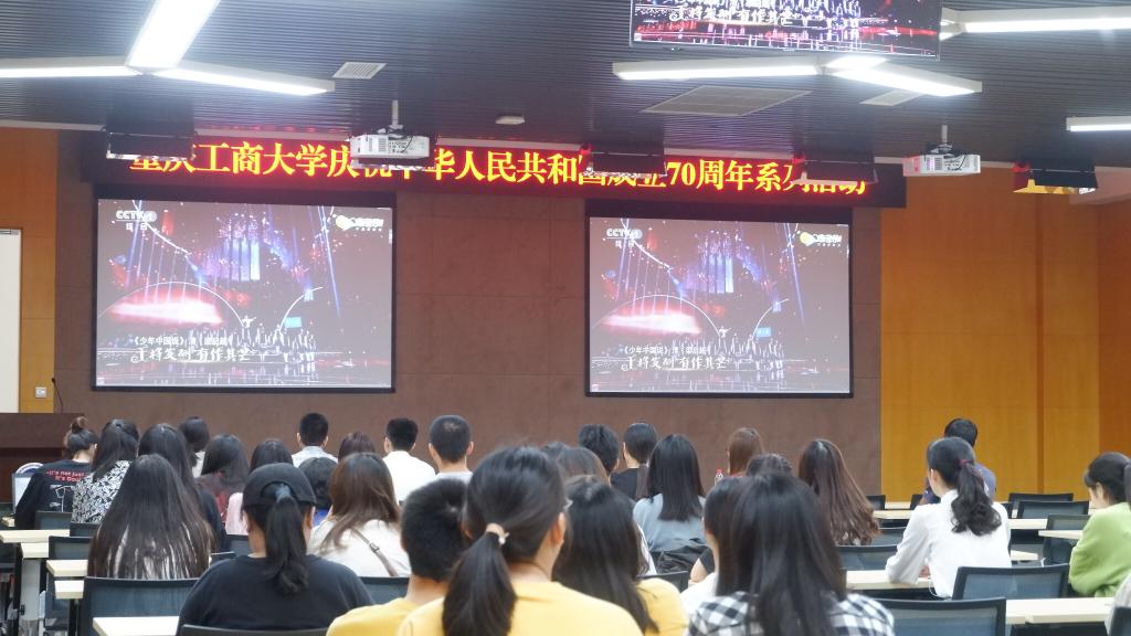据悉,我校共青团庆祝中华人民共和国成立70周年系列活动已经陆续开展,包括“我爱你中国”龙脊书香读书分享会、“奋进新时代”三下乡宣讲活动、“奋斗的青春最美丽”社会实践调研报告大赛等线下主题活动,“今天是你的生日”我为祖国献祝福诗书画征集、“点赞新时代”网络文化产品大赛、“与国旗同框向祖国告白”等线上活动,全校师生可以关注“青春工商大”微信公众号了解和参与活动。