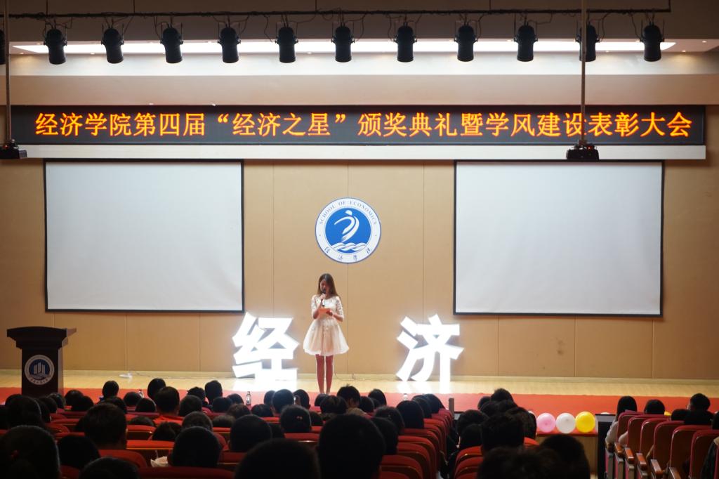 此次大会一共有五项环节:经济之星颁奖,2017-2018学年第二学期经济学院学风建设表彰,学生公开发表论文表彰,2018经济学院暑期社会实践成果汇报, “读国学经典,立诚信之志”读书、书法比赛颁奖。