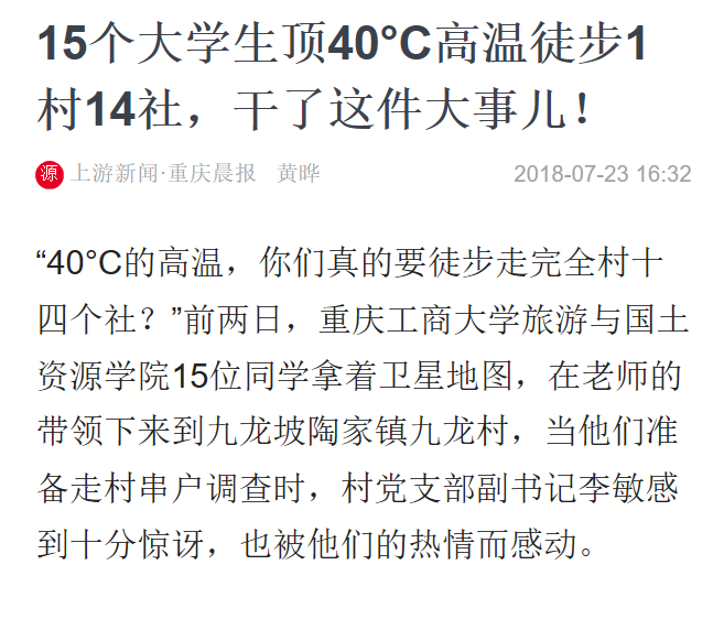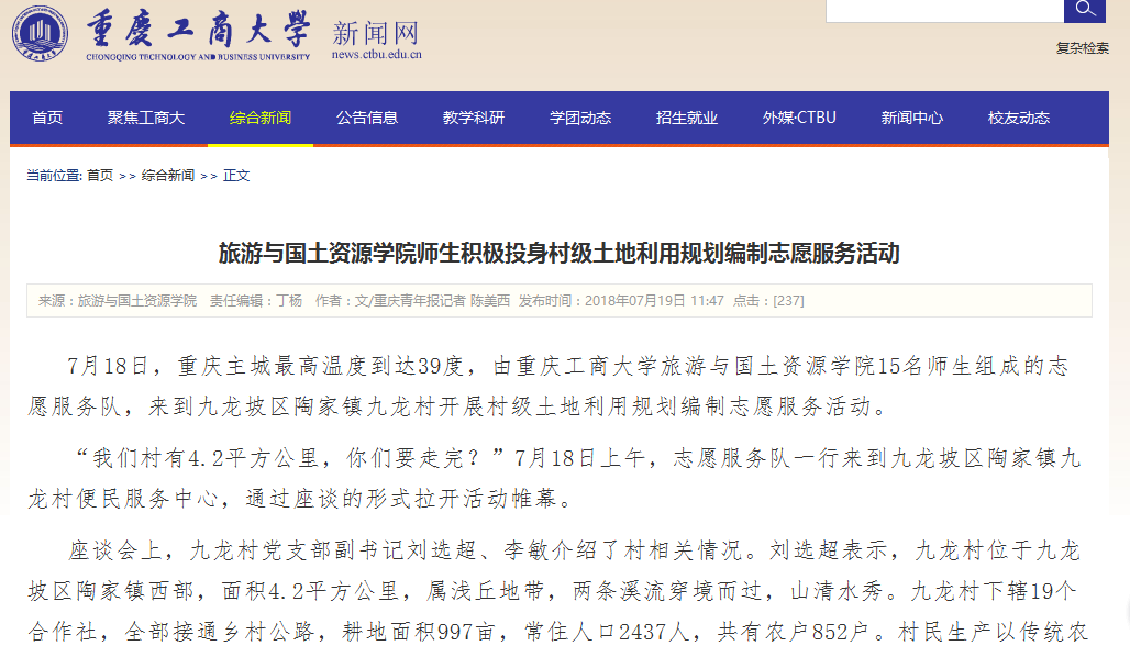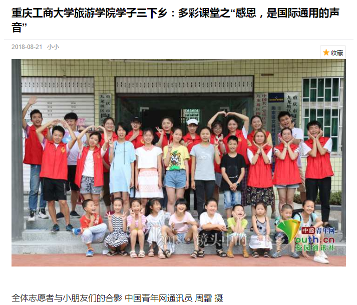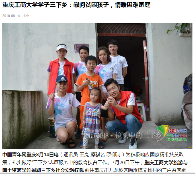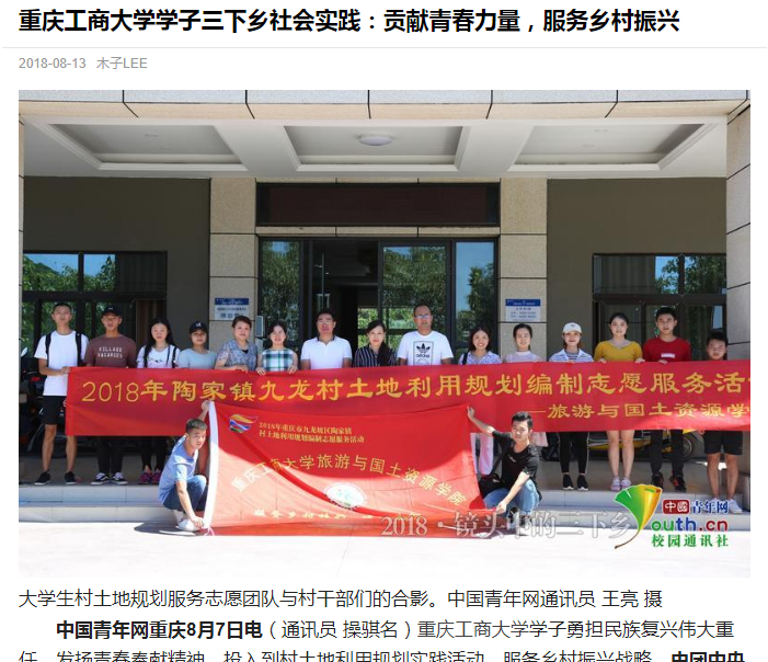 学院师生在九龙坡区陶家镇九龙村和文峰村围绕“青春大学习 奋斗新时代”主题开展的系列活动中志愿团队的突出表现受到了国家级和省市级多方媒体的广泛关注和报道,社会反响热烈。