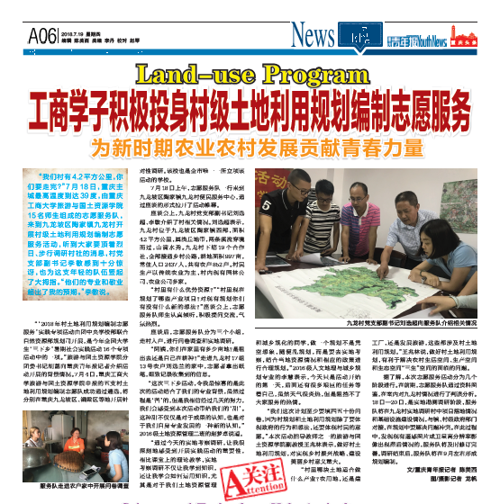 志愿者在实践中“受教育、长才干、做贡献”,将社会实践与学习相结合、与服务社会相结合,促进了农村精神文明建设,丰富了广大农民的精神文化生活需求;开展村土地利用规划志愿服务,为新时代农业农村发展和社会主义新农村贡献建设力量。